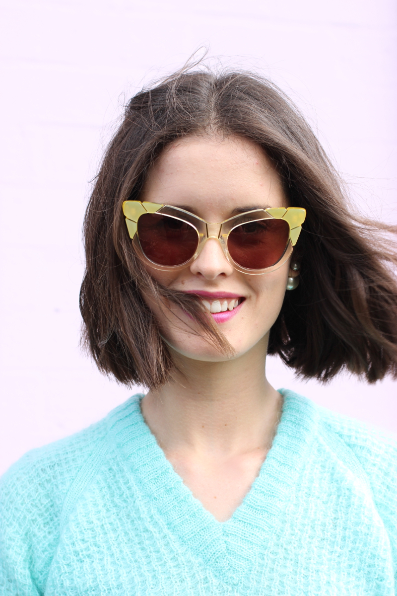 Pared Puss & Boots sunglasses in Mellow Yellow worn with Antipodium jumper and Christian Dior Earrings.